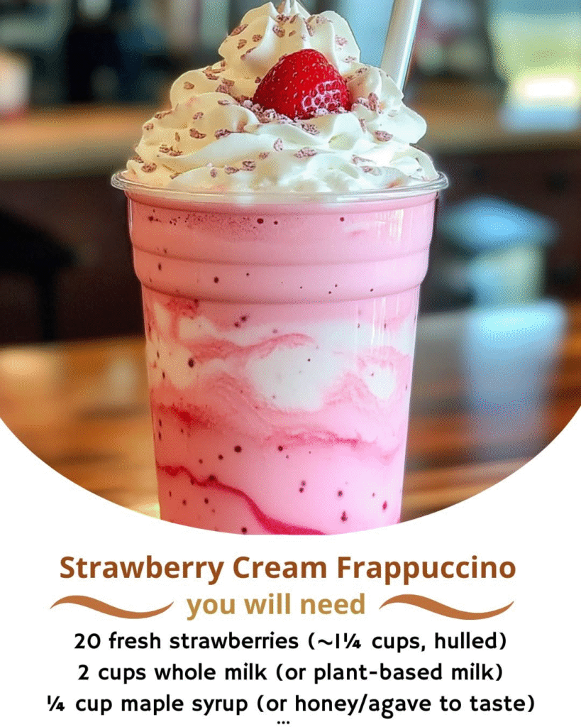 This recipe came from a summer craving. I wanted something sweet, fruity, and refreshing — but without the $7 price tag or fake syrups. I had strawberries in the fridge, some milk, and a blender. The result was better than anything I’d ordered before: thick, cold, naturally sweet, with that creamy strawberry-ice cream vibe I used to love as a kid.